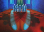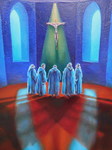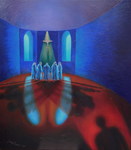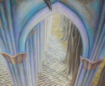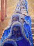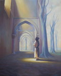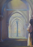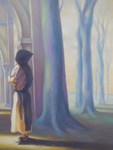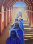 2006Nonnen in kloostergang; olieverf op papier op MDF. Te koop. Behorend bij expositie ''De Laatste Gang''. Meer info is links in het menu te vinden onder het kopje: ''EXPO kloosterserie''. Vooral het klooster ''De Achelse Kluis'' is mijn grootste inspiratiebron geweest.